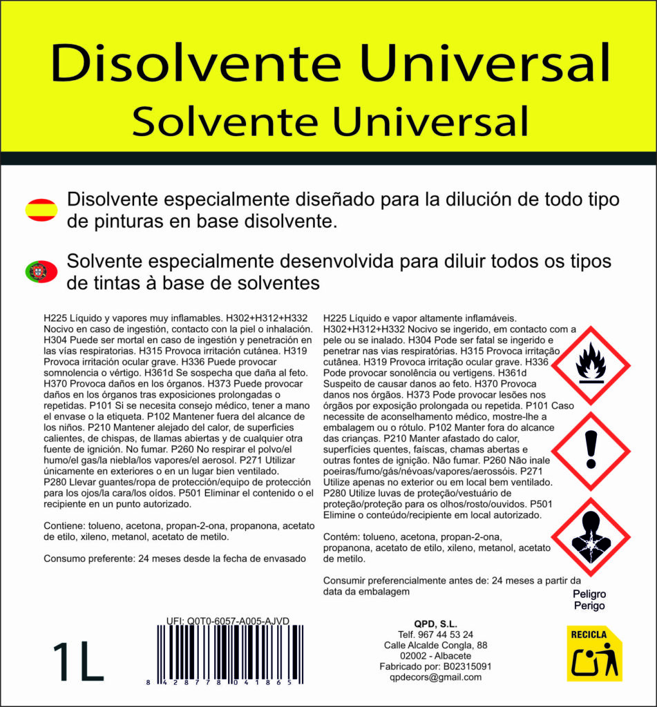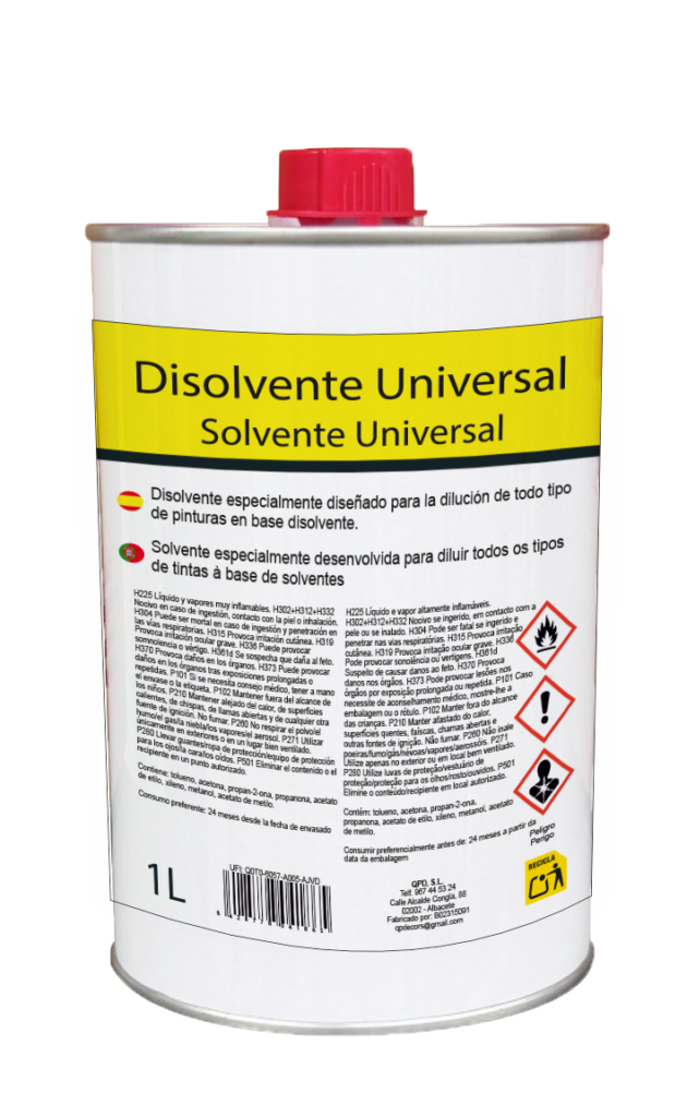 Disolvente 1L Mezcla especialmente diseñada para la dilución de todo tipo de pinturas en base disolvente. Ficha técnica Hoja de seguridad